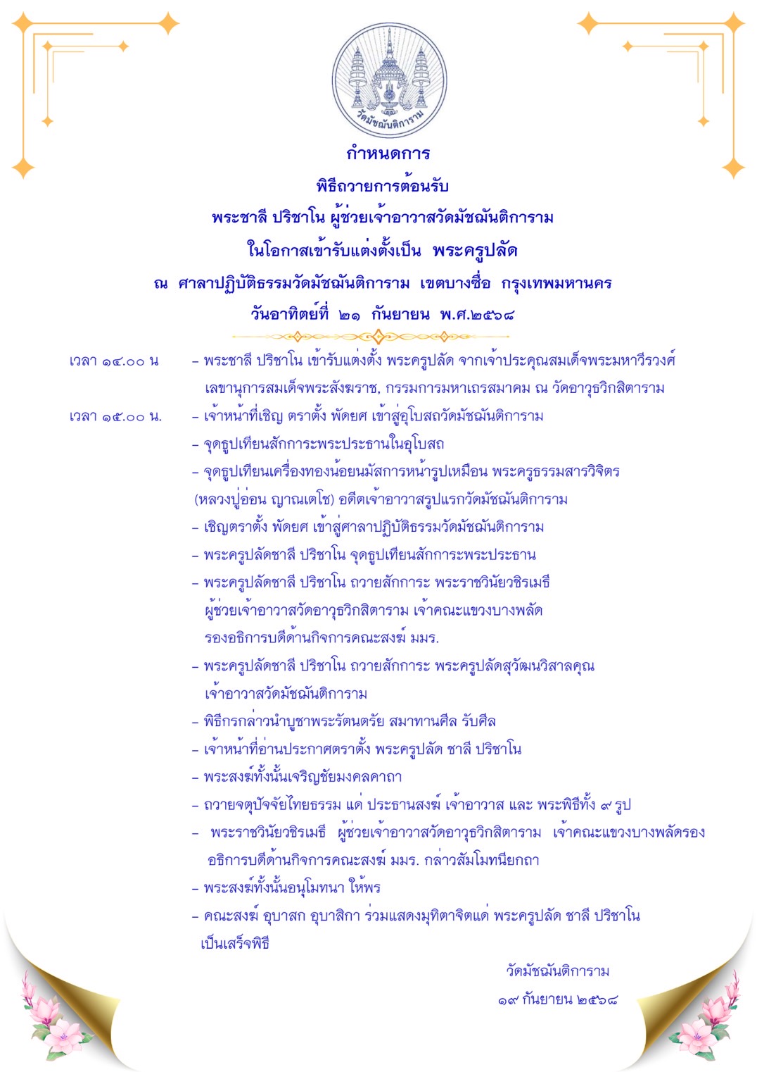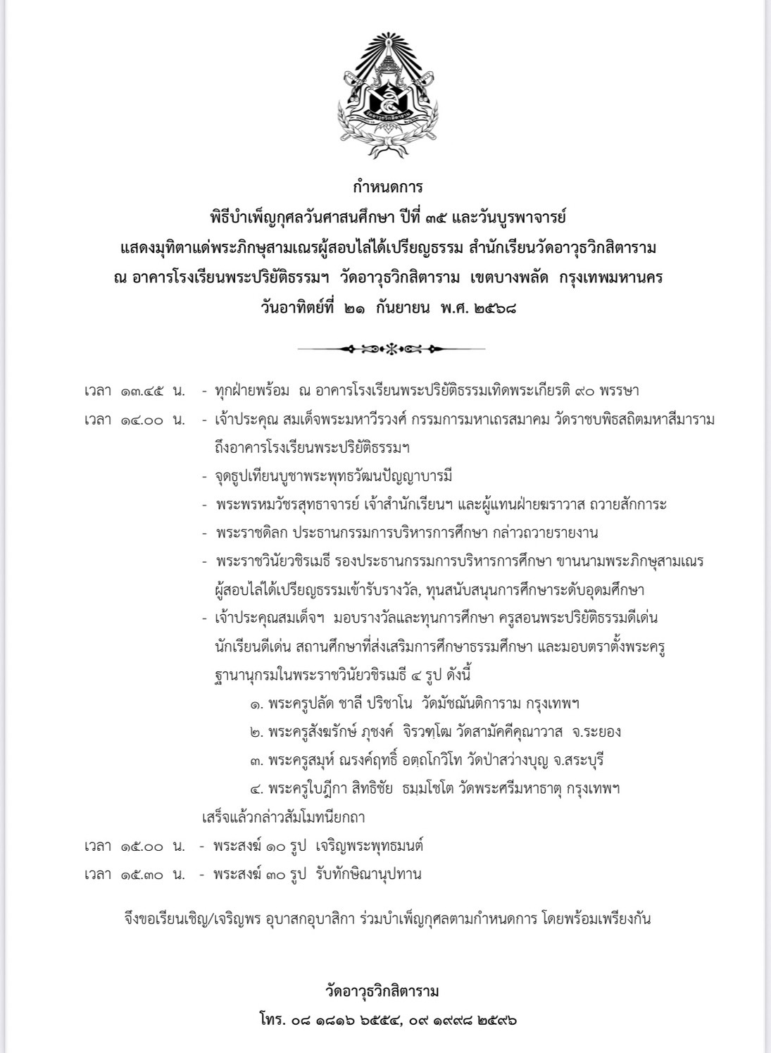 วันเสาร์ ที่ ๒๐ กันยายน พ.ศ. ๒๕๖๘
